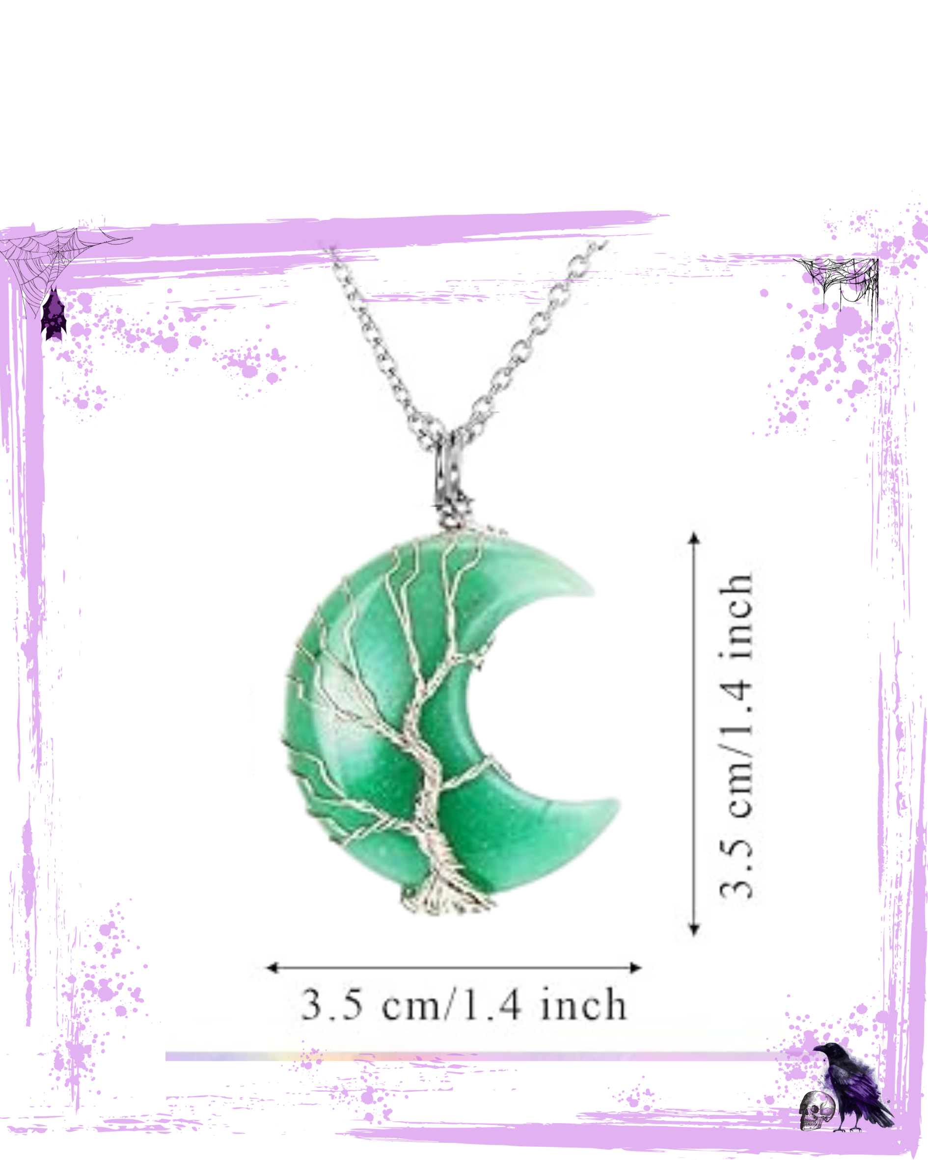 Harness the positive energy of the Aventurine Moon Necklace, beautifully cradled within a tree of life wire housing. This captivating piece blends the stone’s natural luck and vitality with the tree of life’s symbol of growth and renewal. Wear it to invite abundance and fresh opportunities while adding a distinctive touch of elegance to your everyday style.