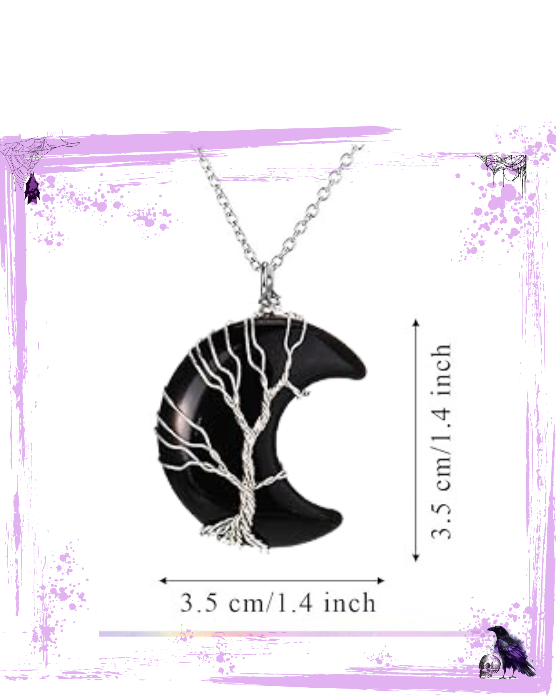 Embrace the balance of nature and mystique with this Obsidian Moon Necklace, artfully encased in a delicate tree of life wire housing. The protective strength of obsidian combined with the symbolic branches of life creates a meaningful accessory that inspires grounding and growth. Perfect for those seeking both style and spiritual connection, this necklace adds a unique touch to any outfit while serving as a reminder of resilience and renewal.