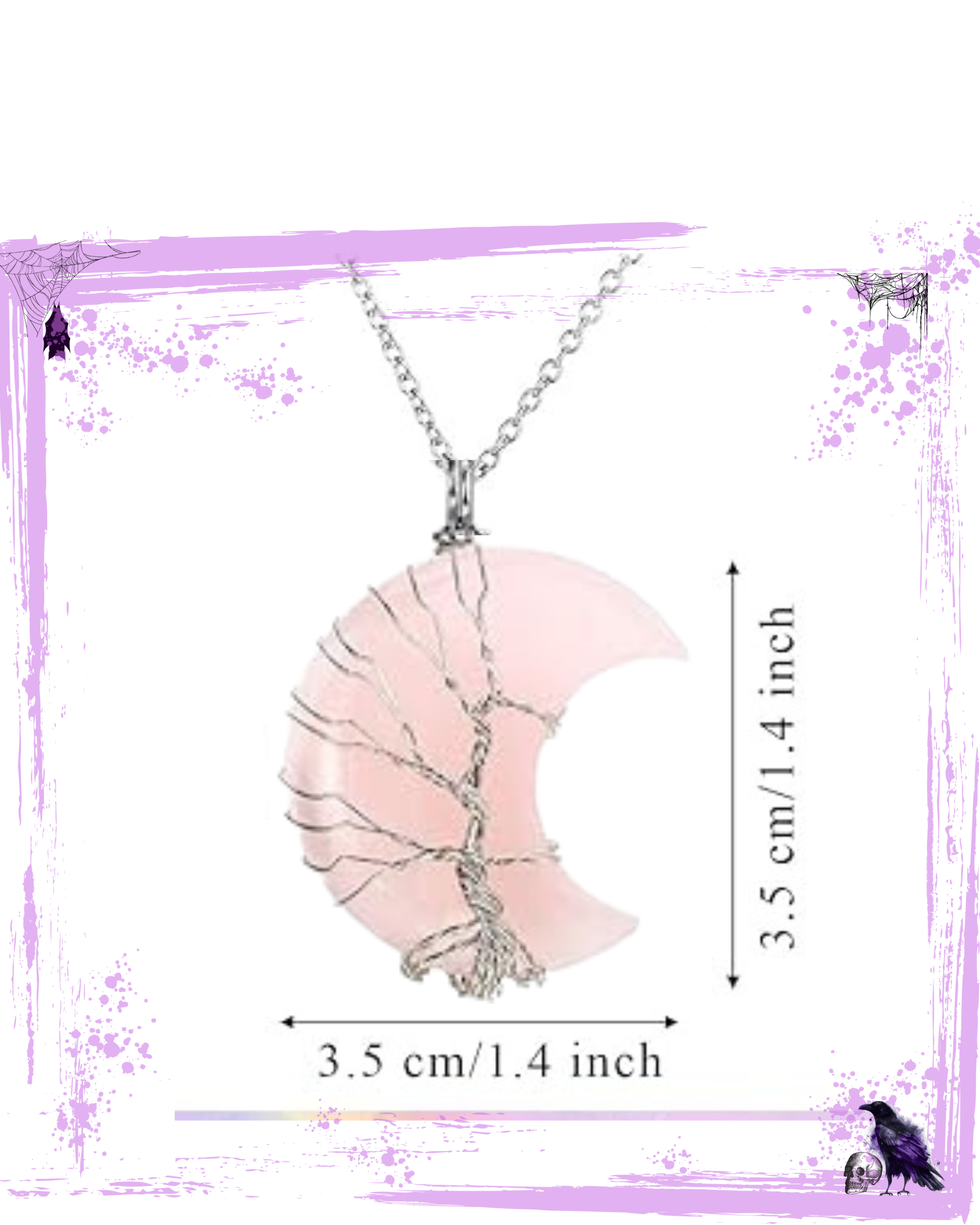 Experience the gentle energy of love and healing with the Rose Quartz Moon Necklace, beautifully wrapped in a tree of life wire housing. This elegant piece not only enhances your look but also symbolizes compassion and emotional balance. Perfect for those seeking to invite harmony and warmth into their life, it serves as a daily reminder of self-love and connection.